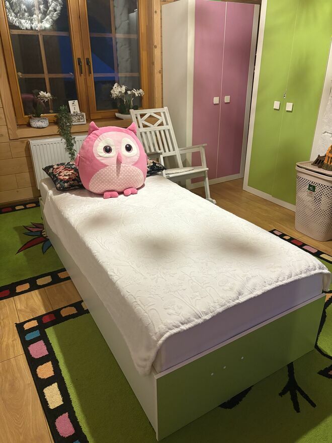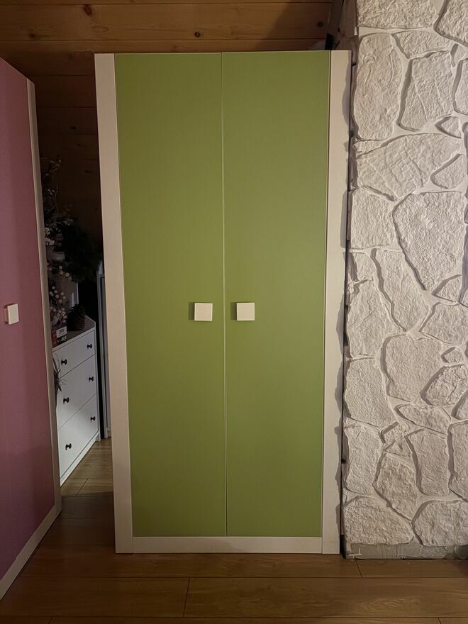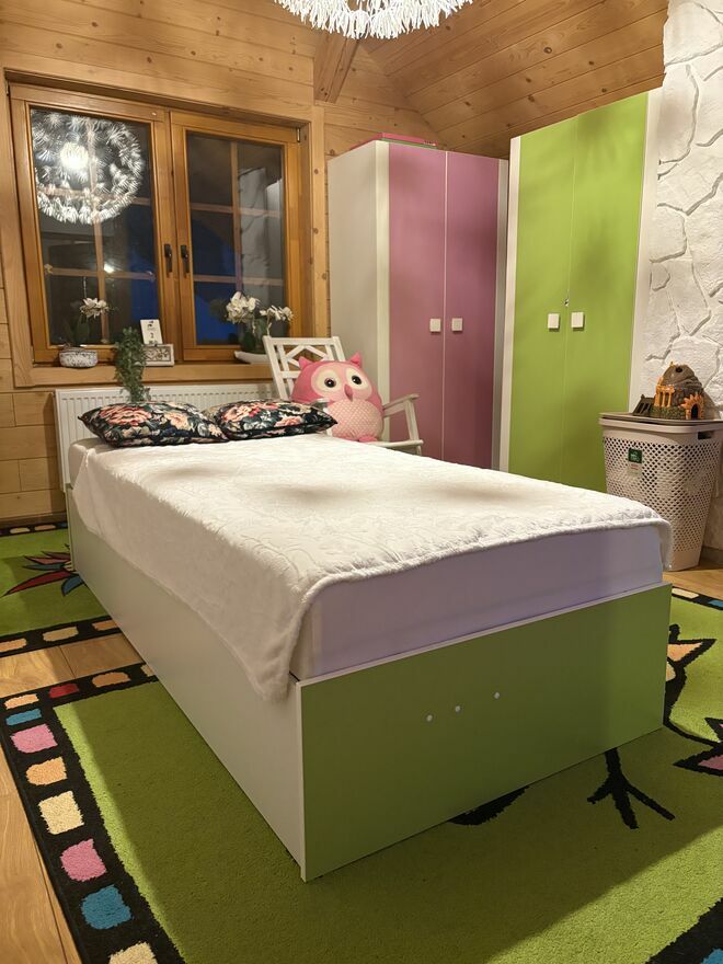 Dwa komplety szafa komoda i łóżko w kolorze ładnej zieleni i drugi w jasnym różu. Bardzo ładne i w bardzo dobrym stanie. Sprzedam za symboliczne 50 zł każdy lub 100 zł za szafę komodę i łóżko :))Magdalena